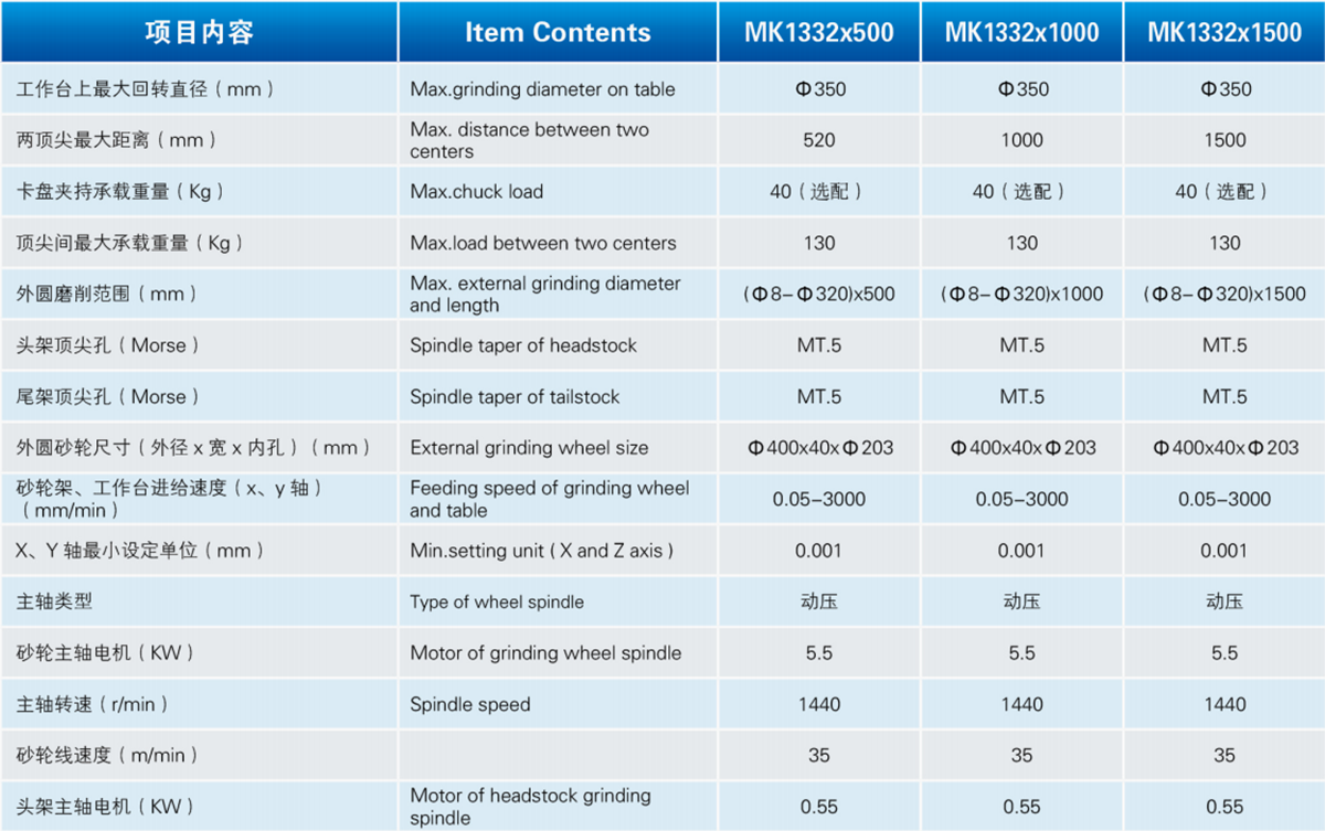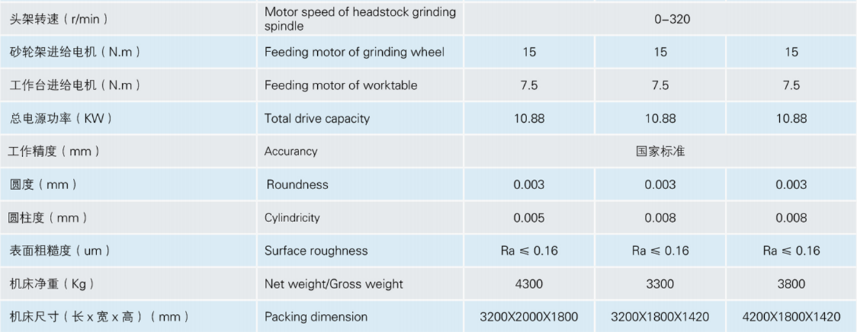 砂轮主轴采用套筒式动压主轴,回转精度高、刚性强,温升低。