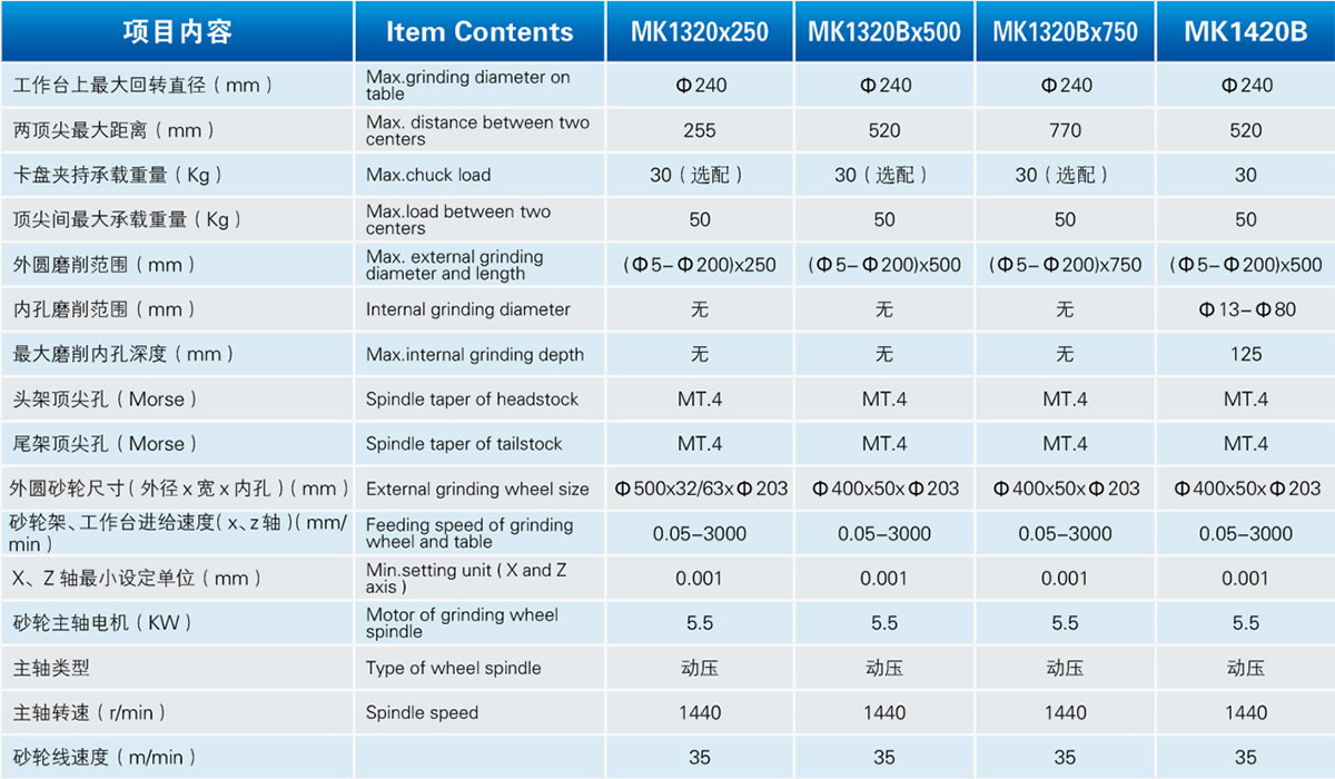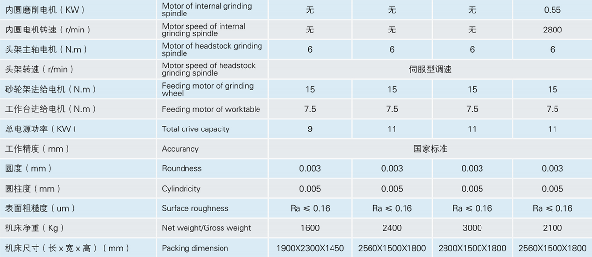 〇砂轮主轴采用套筒式动压主轴,回转精度高、刚性强,温升低。