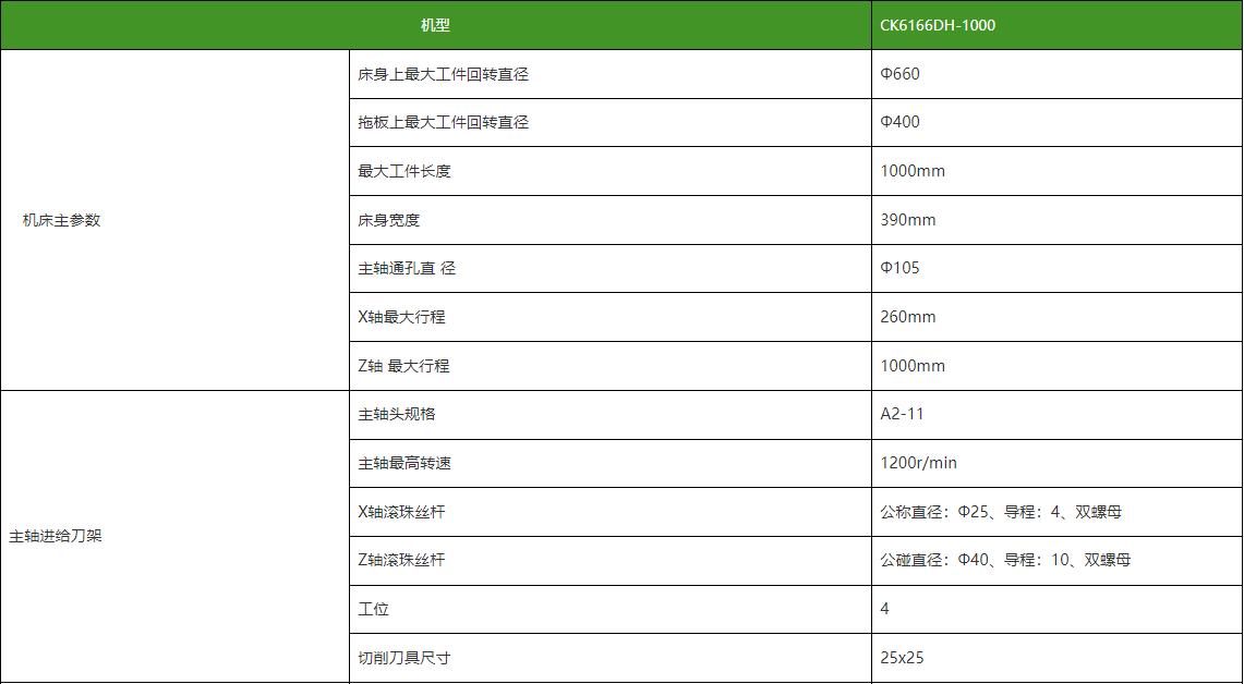 CK6166DH系列数控车床具有精度高、功能 全、高功率、大通孔(主轴通孔直径*105)等特 点,同时具有良好的精度稳定性和精度保持性。