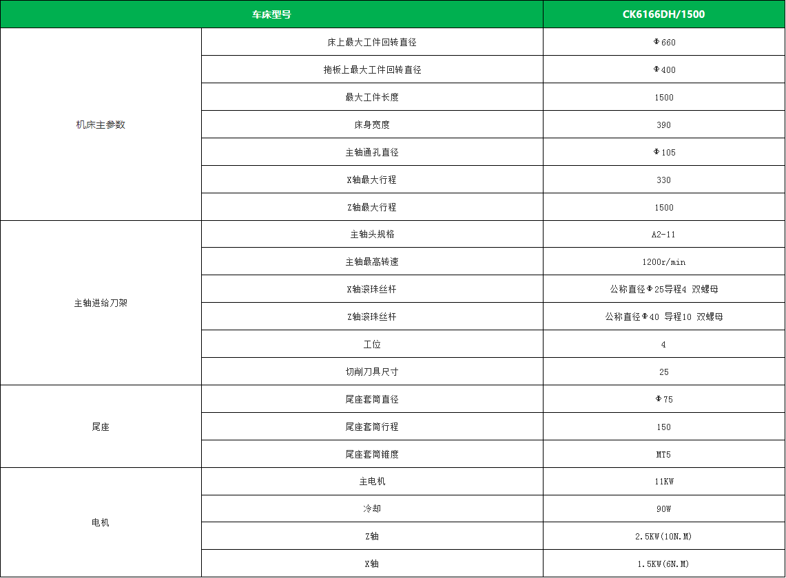 CK6166DH系列数控车床具有精度高、功能全、高功率、大通孔(主轴通孔直径φ105)等特点,同时具有良好的精度稳定性和精度保持性。