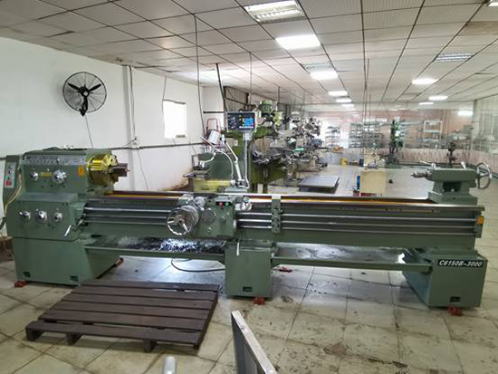答:C6150B系列普通卧式车床主要用于各种回转体零件的外圆、内孔、端面、锥度、切槽以及公制螺纹、英制螺纹、模数螺纹、径节螺纹的加工,是通用性非常强的卧式车床。具有精度高、功率大、刚性强、功能全等特点,其主要结构和部件均经过优化设计,是加工轴类、盘类、螺杆以及特形面类工件的首选设备。进给箱采用“三轴滑动”公用齿轮机构,并螺纹种类变换机构和倍增机构,可在不调换挂轮的情况下对一般常用螺纹进行加工。进给量的种类及调节范围:纵向93种0.028~6.43mm/r,横向93种0.012~2.73mm/r,公制螺纹48种0.5~224mm,英制螺纹48种72-1/8 t/in,模数螺纹42种0.5~112mm,径节螺纹45种56~1/4DP。溜板箱装有快速移动电机驱动刀架纵、横向快速移动,蜗杆轴的单向超越离合器在快速电机定向驱动蜗杆轴时对六角杆输入的进给实现单向超越。刀架纵向移动时,溜板箱的纵向移动手轮自行脱开,当停止移动时又自行接通,保证使用者的安全。当刀架移动受阻,切削力过大时,安全离合器打滑以避免进给运动链损坏。